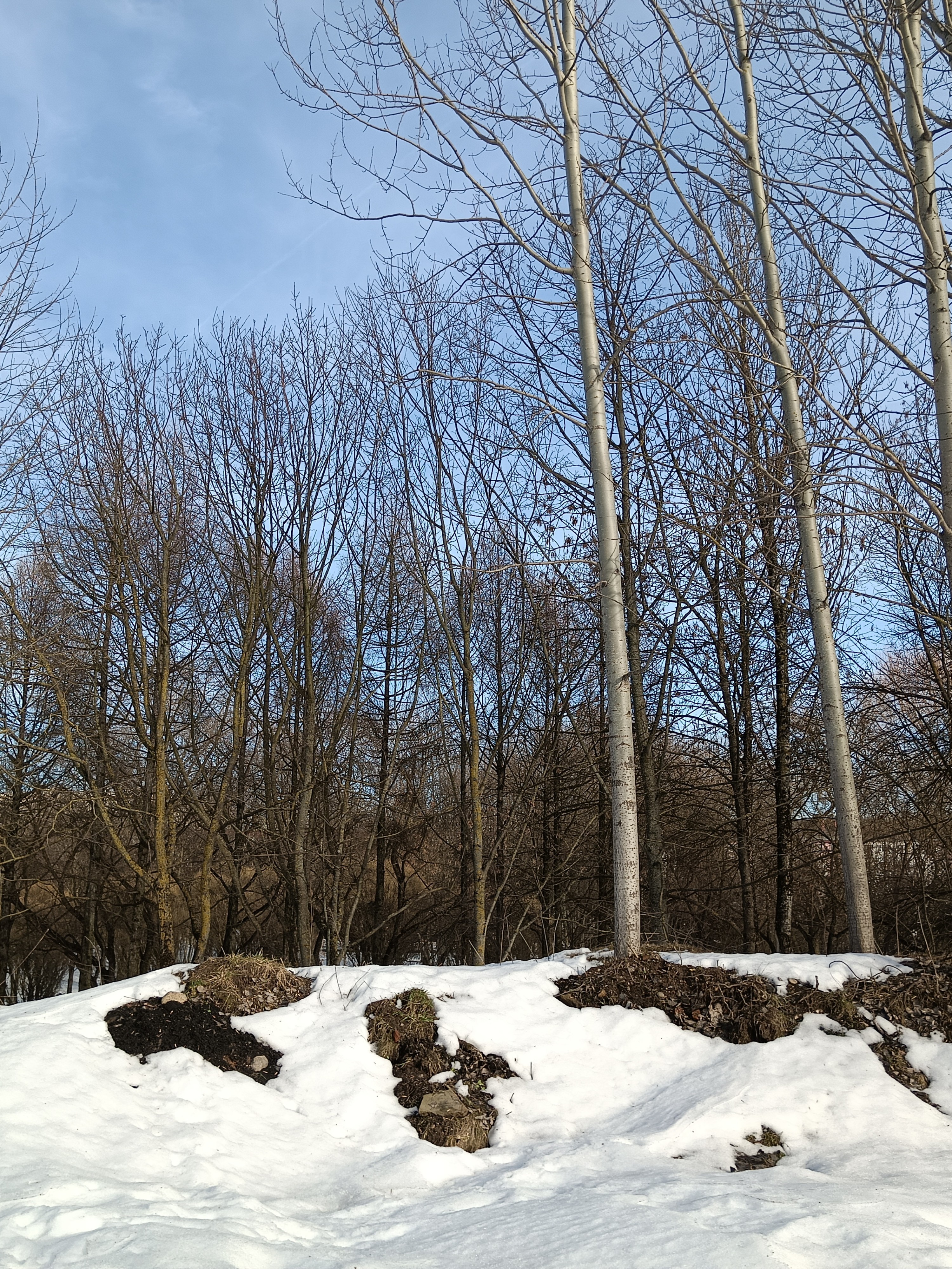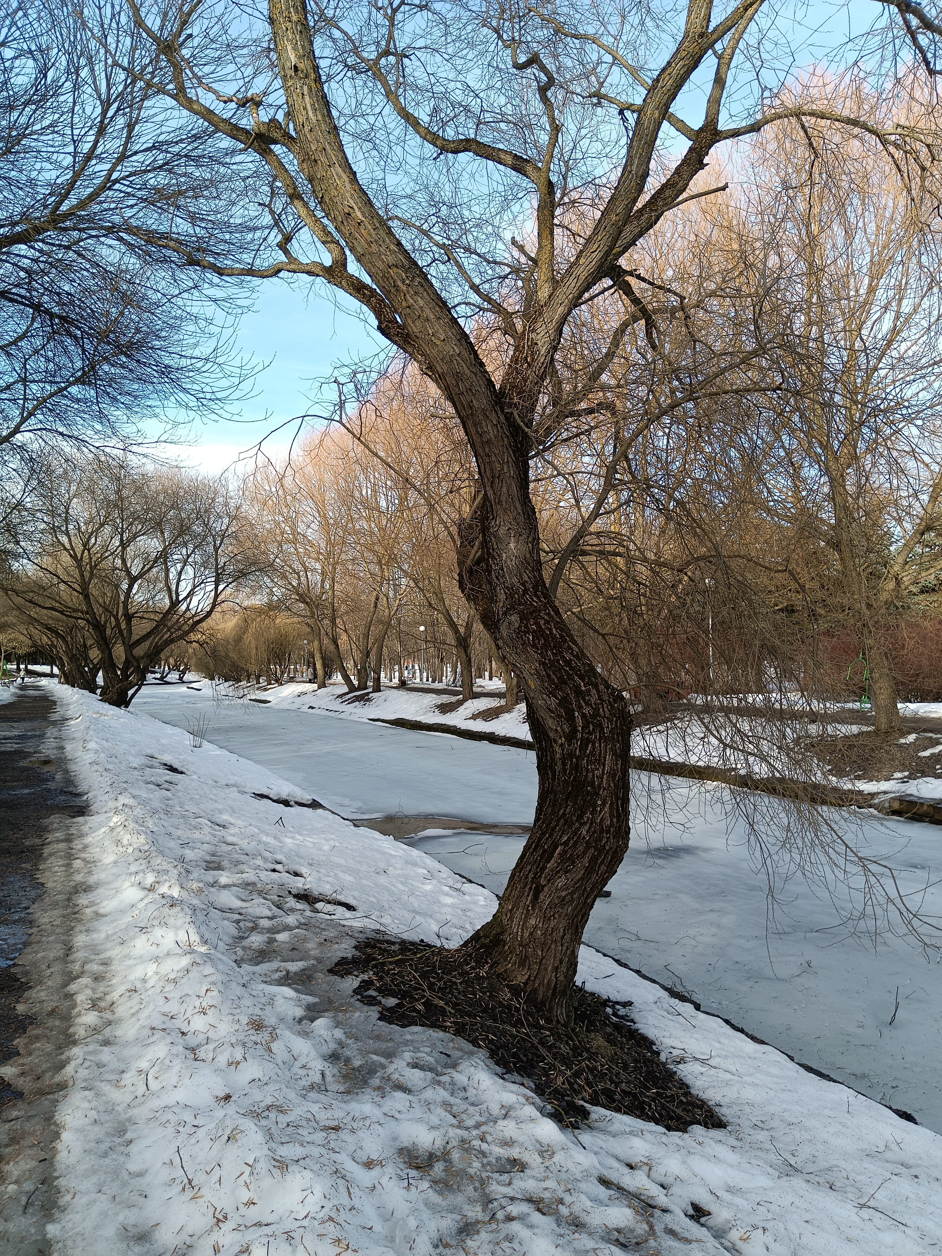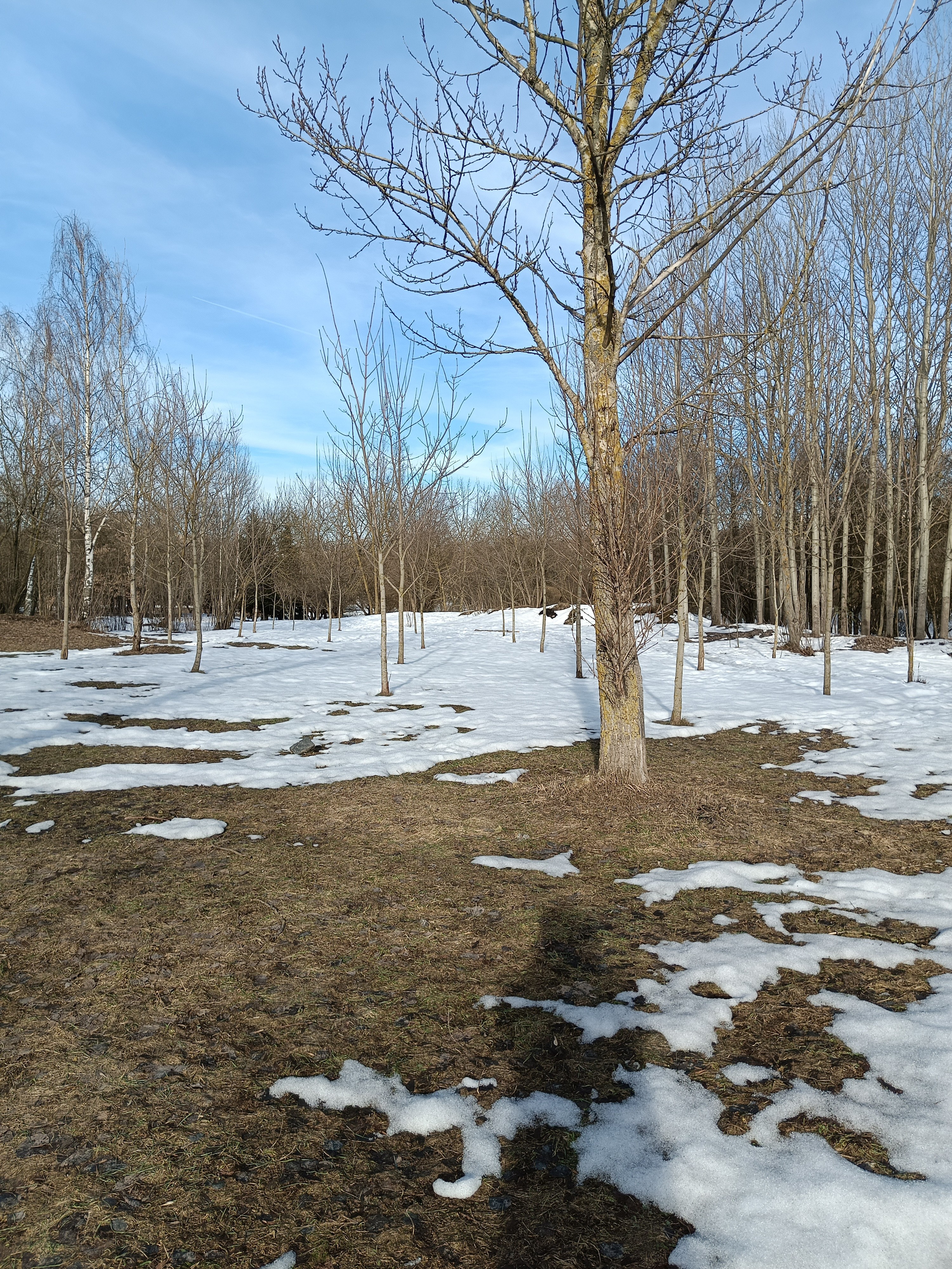 Вышли погулять, погода такая сказочная. Под определенным ракурсом можно вообразить, что мы в лесу.
